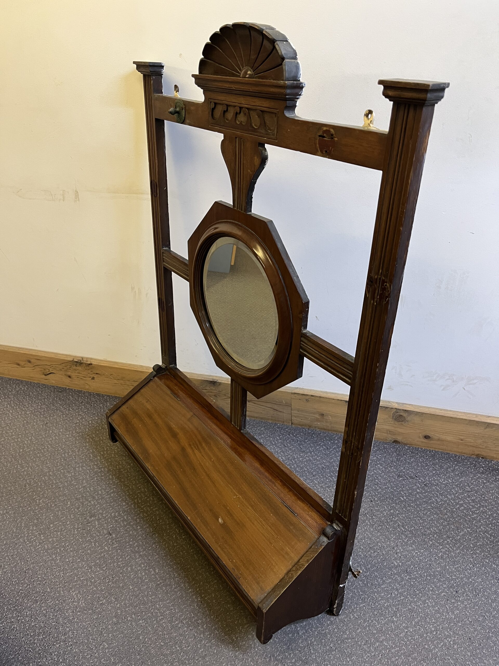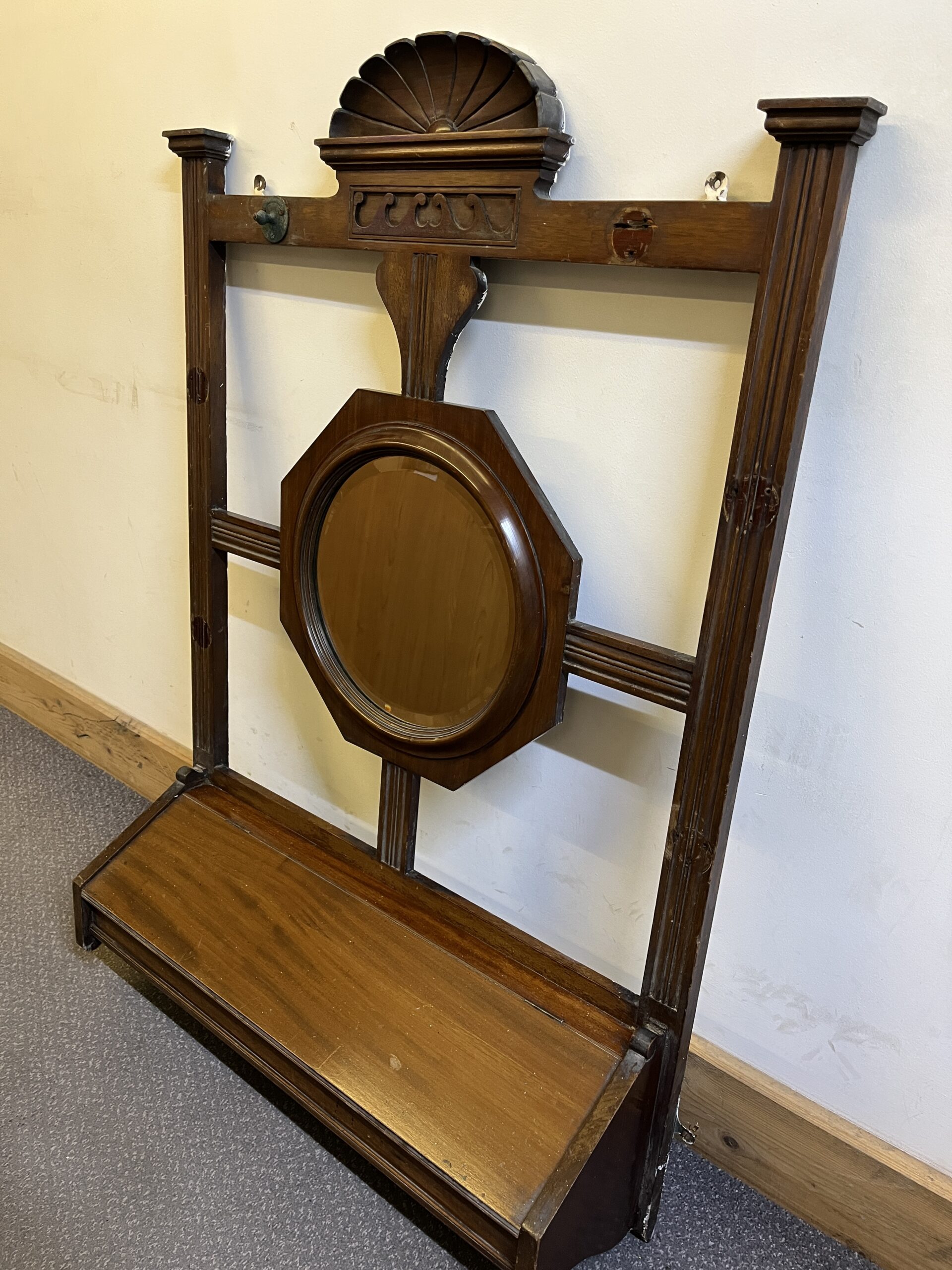 Edwardian Hall Stand/ Harrods Antique Mahogany Hall Stand With Glove Compartment