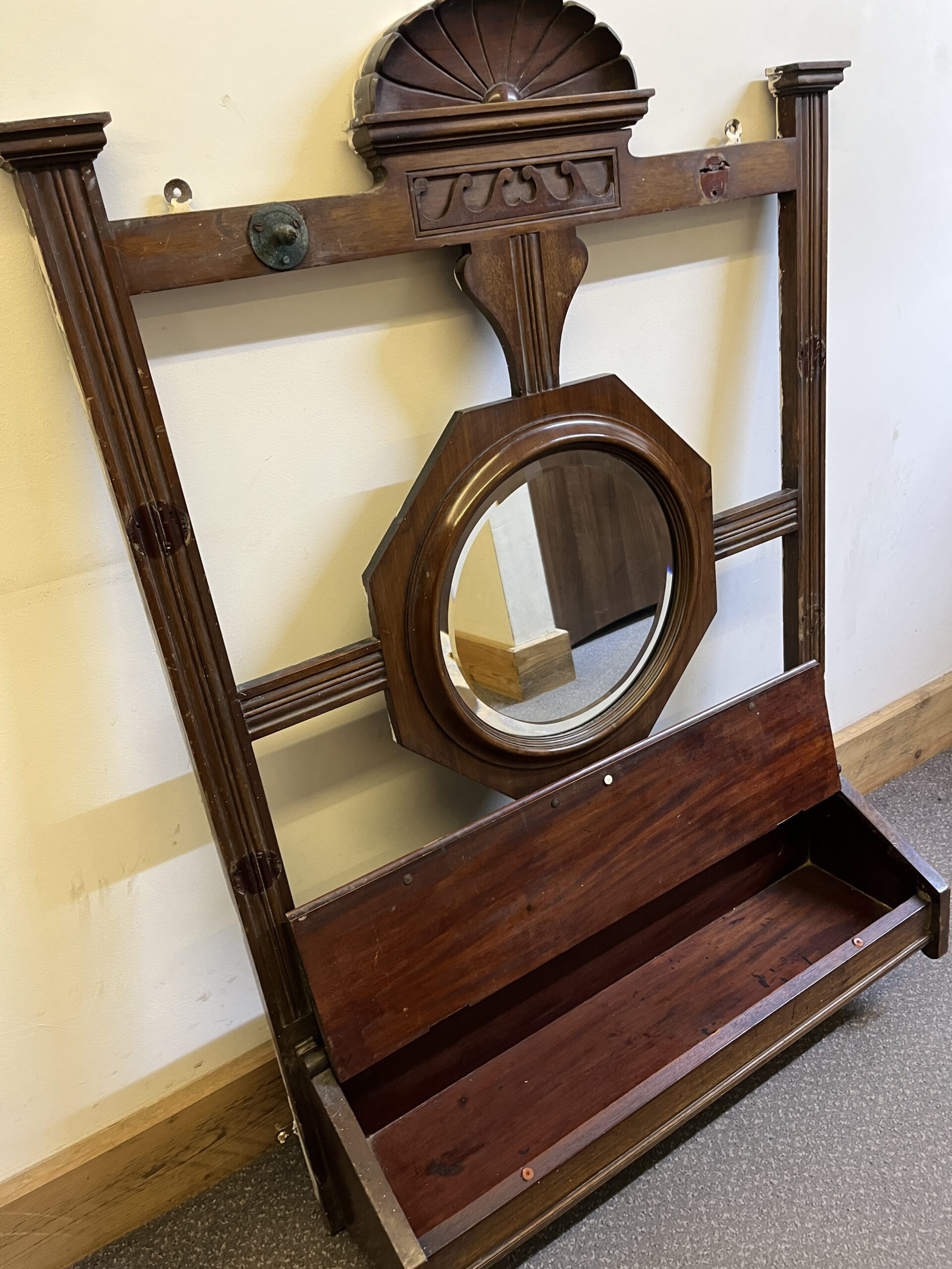 Edwardian Hall Stand/ Harrods Antique Mahogany Hall Stand With Glove Compartment and Centre Mirror.