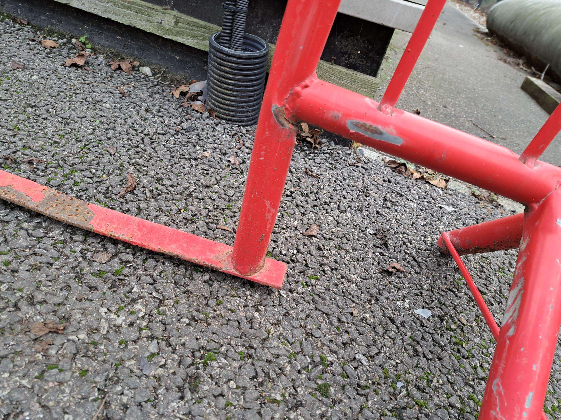 Pedestrian access walk through barrier. Crowd control red site barrier. Approx. size: 2200mm wide x 2150mm high - 920mm opening. Sold in "as is" condition with signs of use, marks and bends. See pictures for condition Call:01843 821555 option 4   Email:reclamation@dds-group.co.uk  Price: £25 each