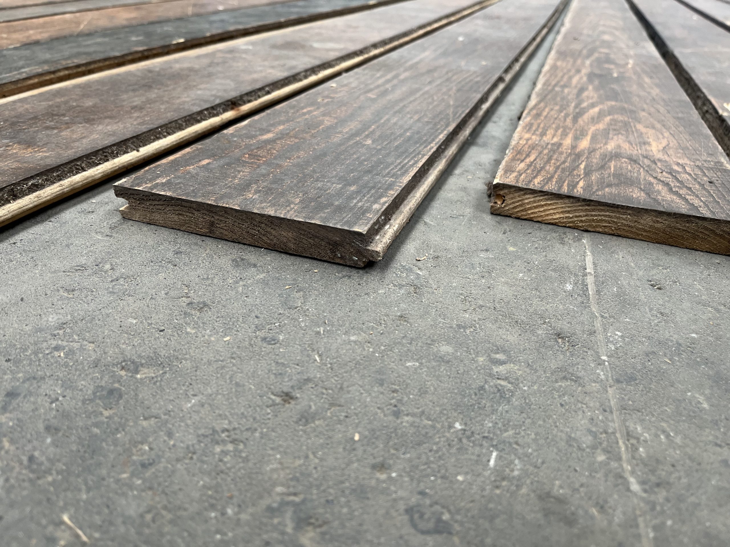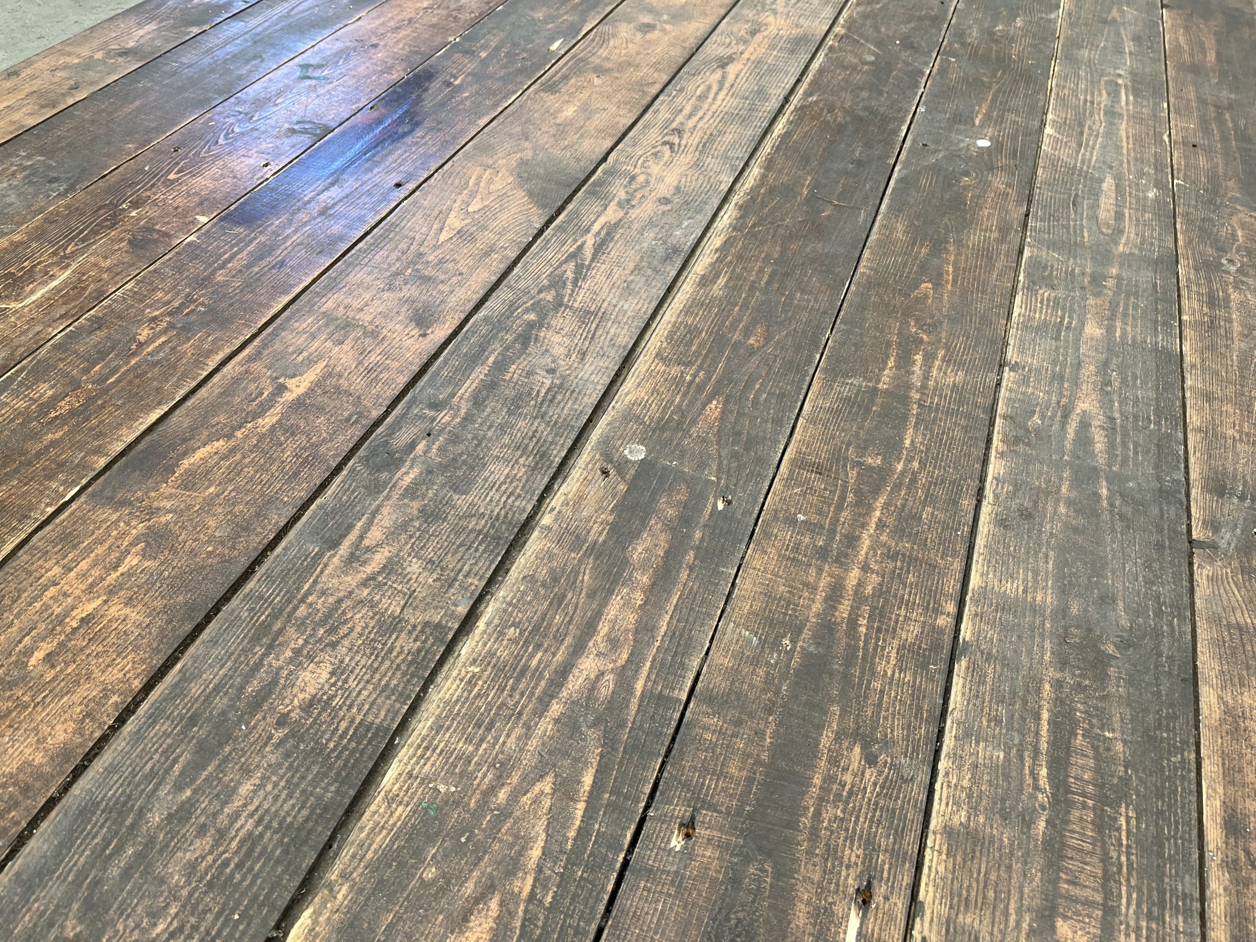 Reclaimed Pine Floor Boards/Character Pine Flooring Boards 18x130mm. These boards were salvaged from a restaurant floor. These are modern t&g floorboards that have been coloured & aged and salvaged from a high foot traffic floor area. With wear and tear, signs of age, general patina, good aged appearance. De-nailed but may have traces of nails in boards, nail holes. Ideal for feature walls/ floors, photo shoots, T.V. film props etc. Some variation in sizing expected, Random lengths. Call:01843 821555 option 4   Email:reclamation@dds-group.co.uk  Price:£20/m2 +Vat (£24 Inc Vat)