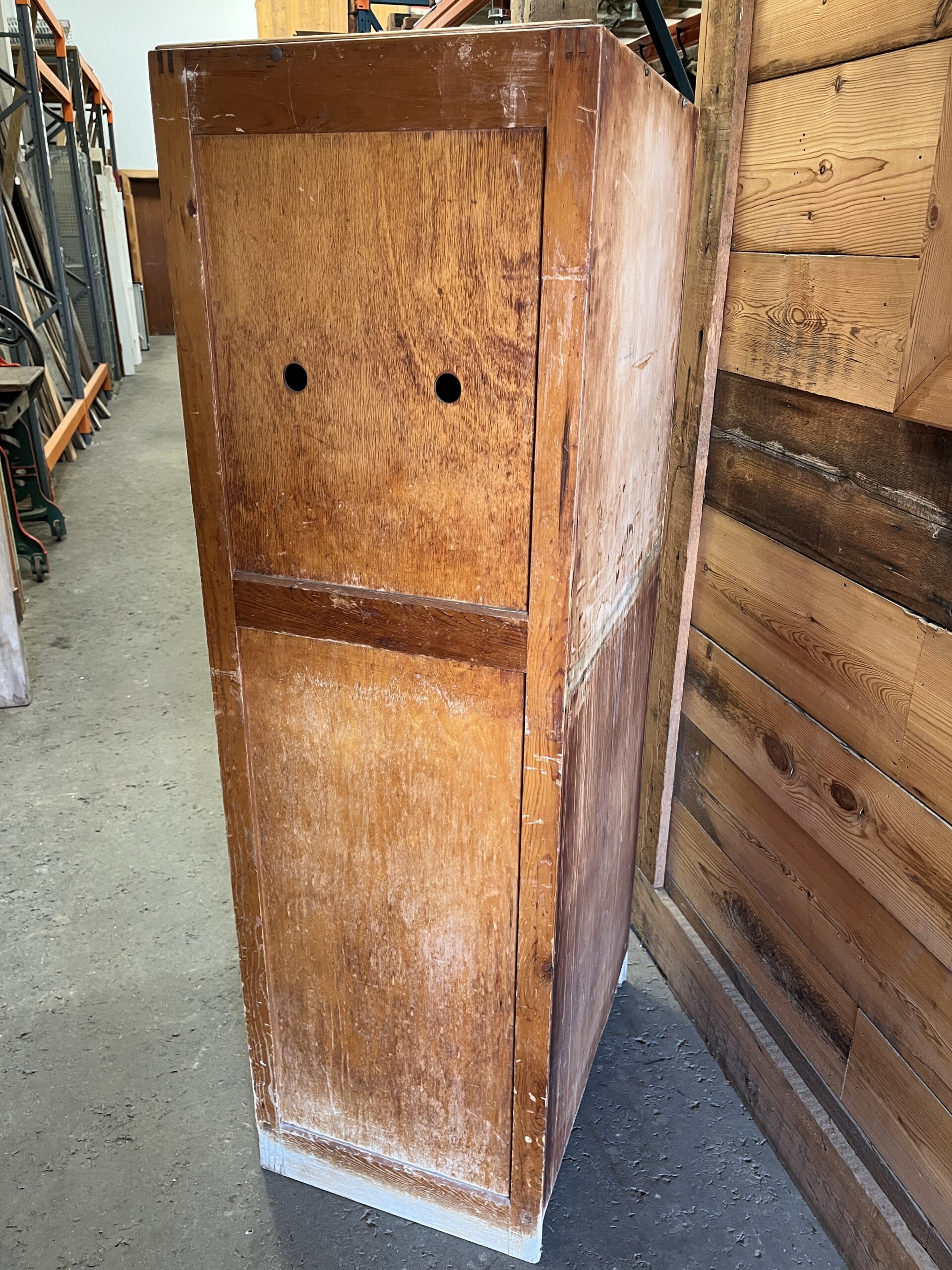 Vintage Gym Wooden Storage Locker/ Vintage Old Pine School Storage Cupboard