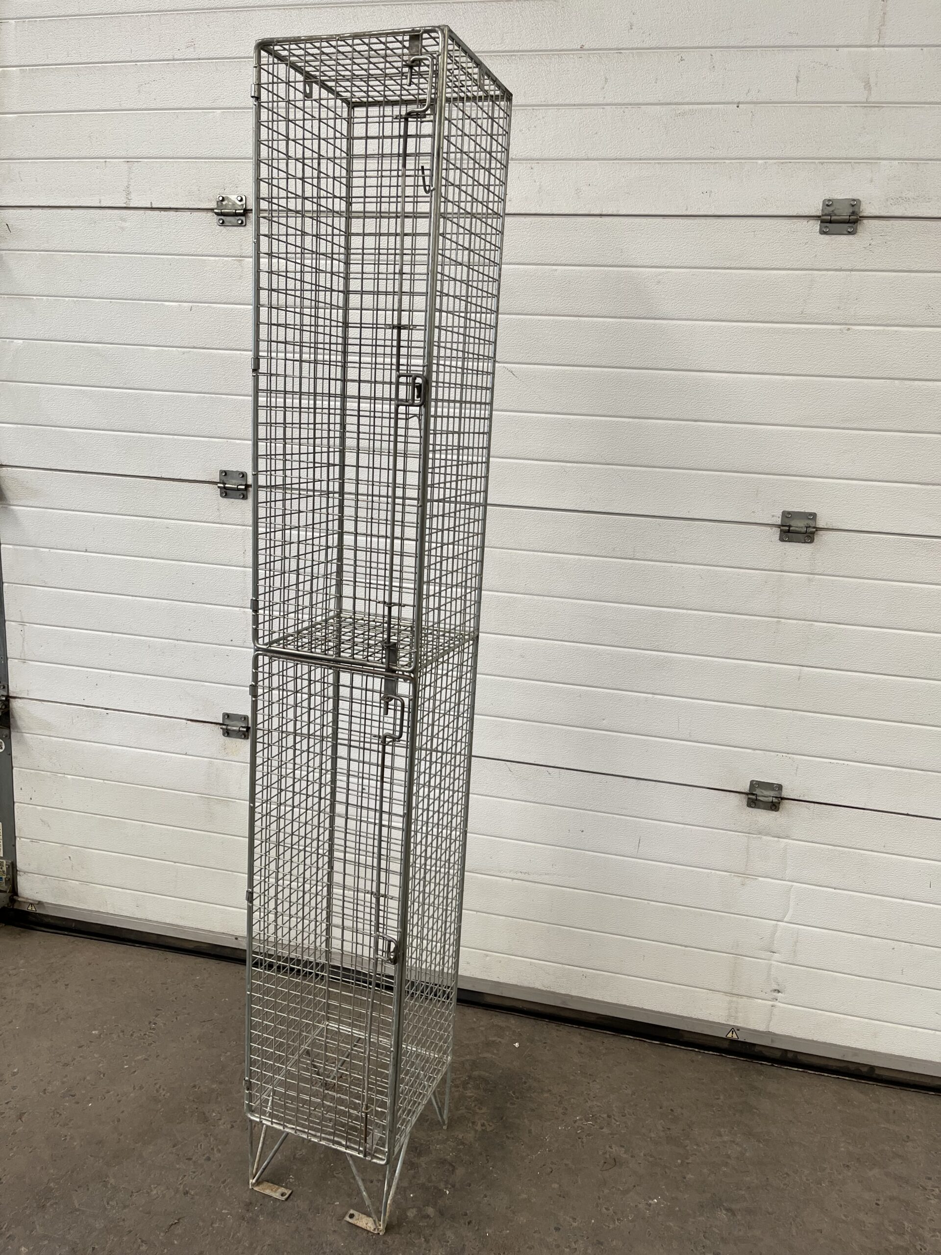 Used Wire Mesh Storage locker/ Industrial Wire Mesh Locker Storage. 2 compartment storage locker on legs.