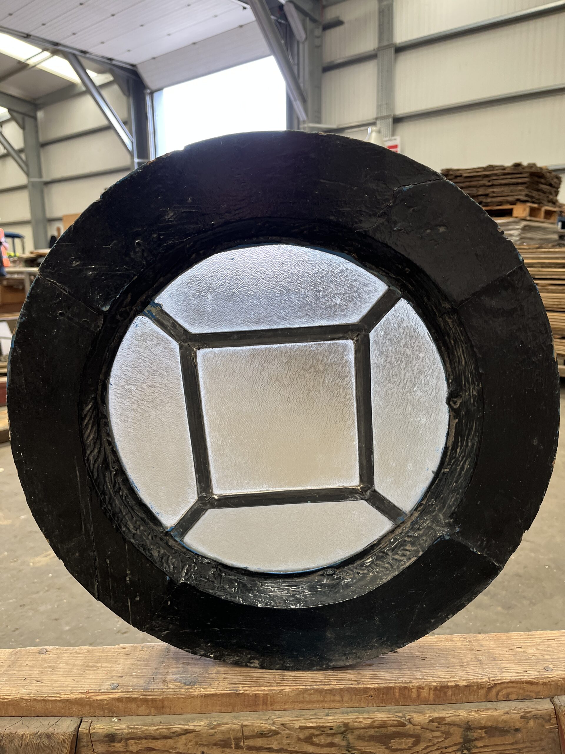 Reclaimed Window/ Bullseye/ Porthole Round Window Obscure Glass in Wooden Frame