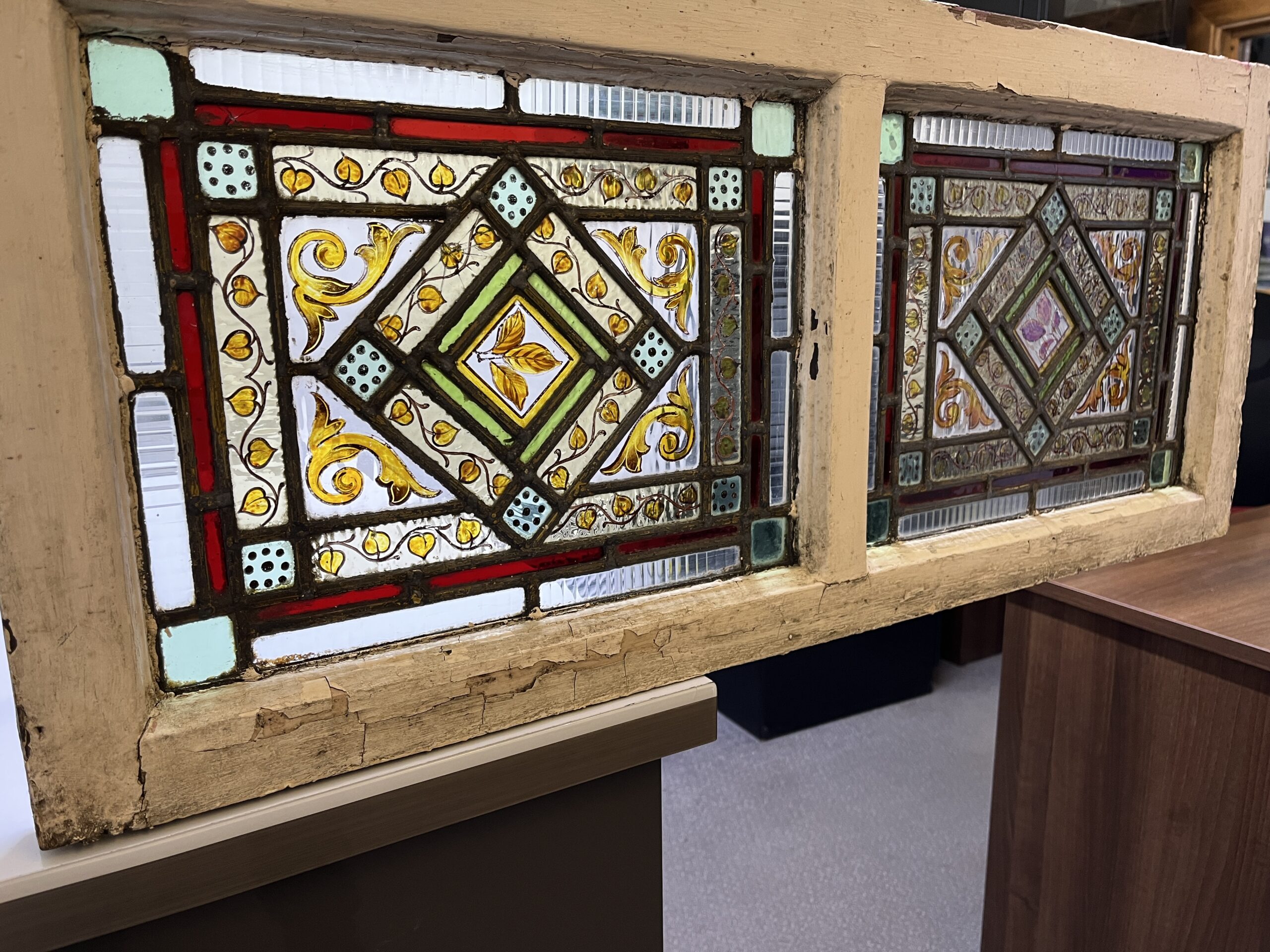 Reclaimed Stained Glass Window Pane Art Nouveau 1930’s Original Stained Glass