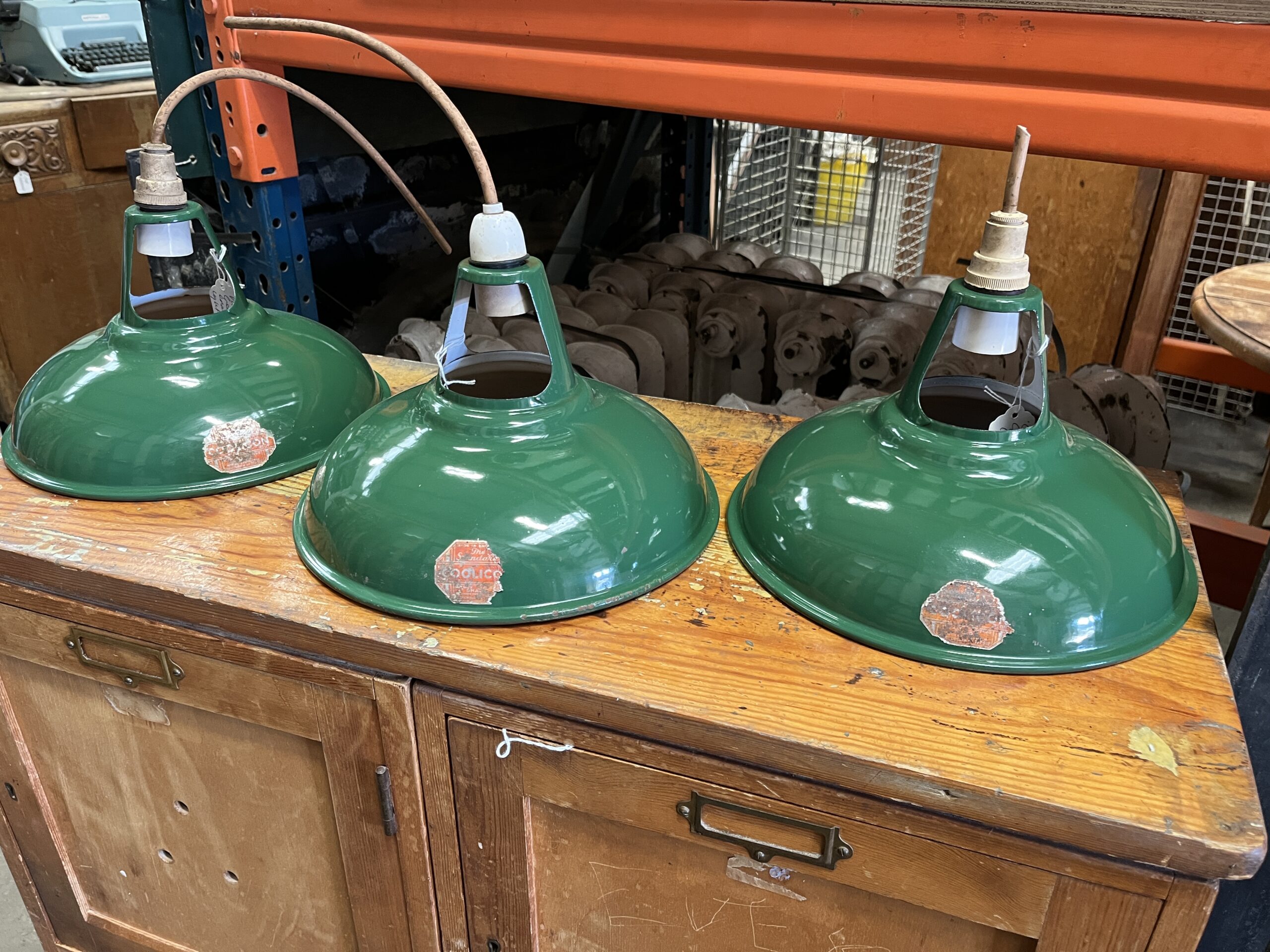 Original Coolicon Green Enamel Light Shade with Red Makers Badge Label